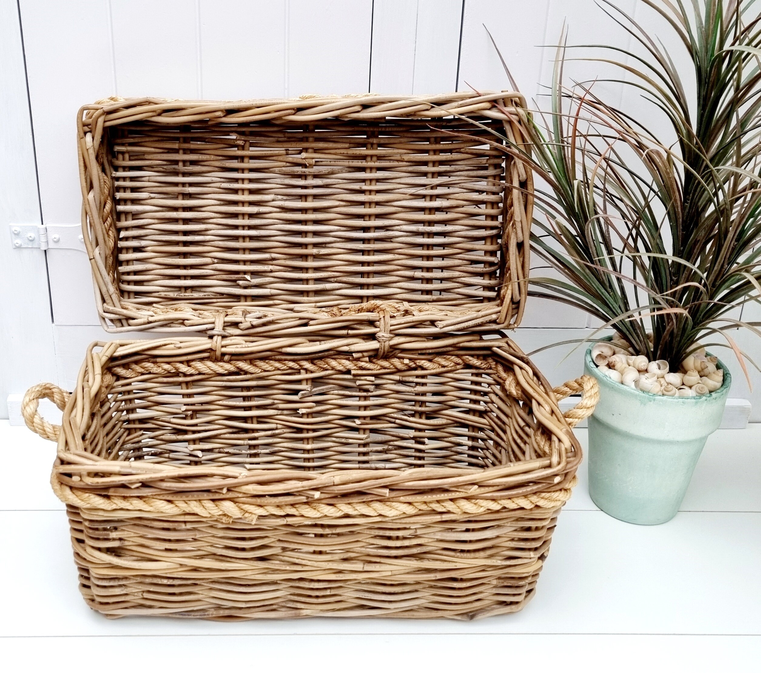 Large Vintage Wicker Basket Lidded Basket For Storage Etsy Uk